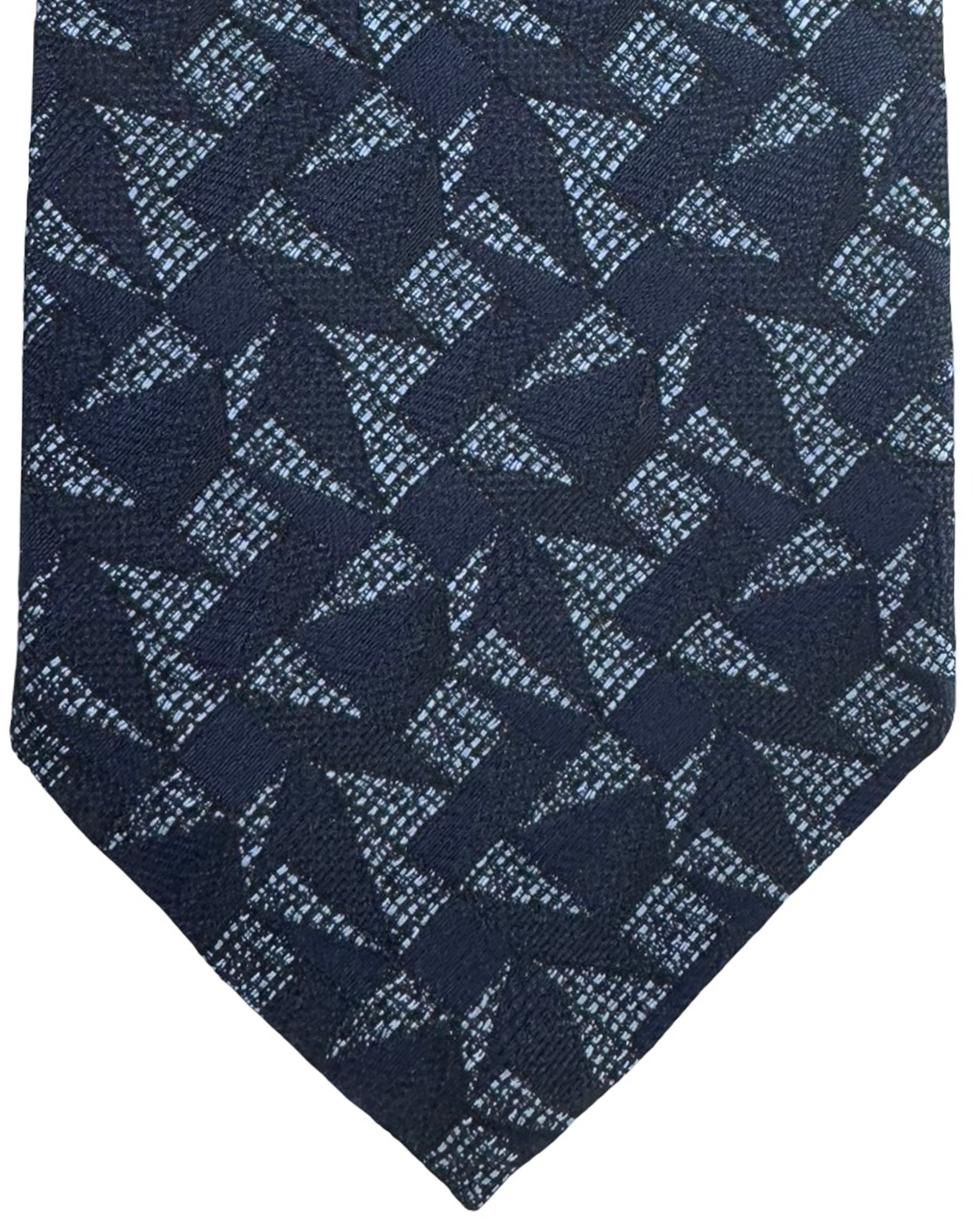 Ermenegildo Zegna Tie Midnight Blue Gray Abstract Geometric Design