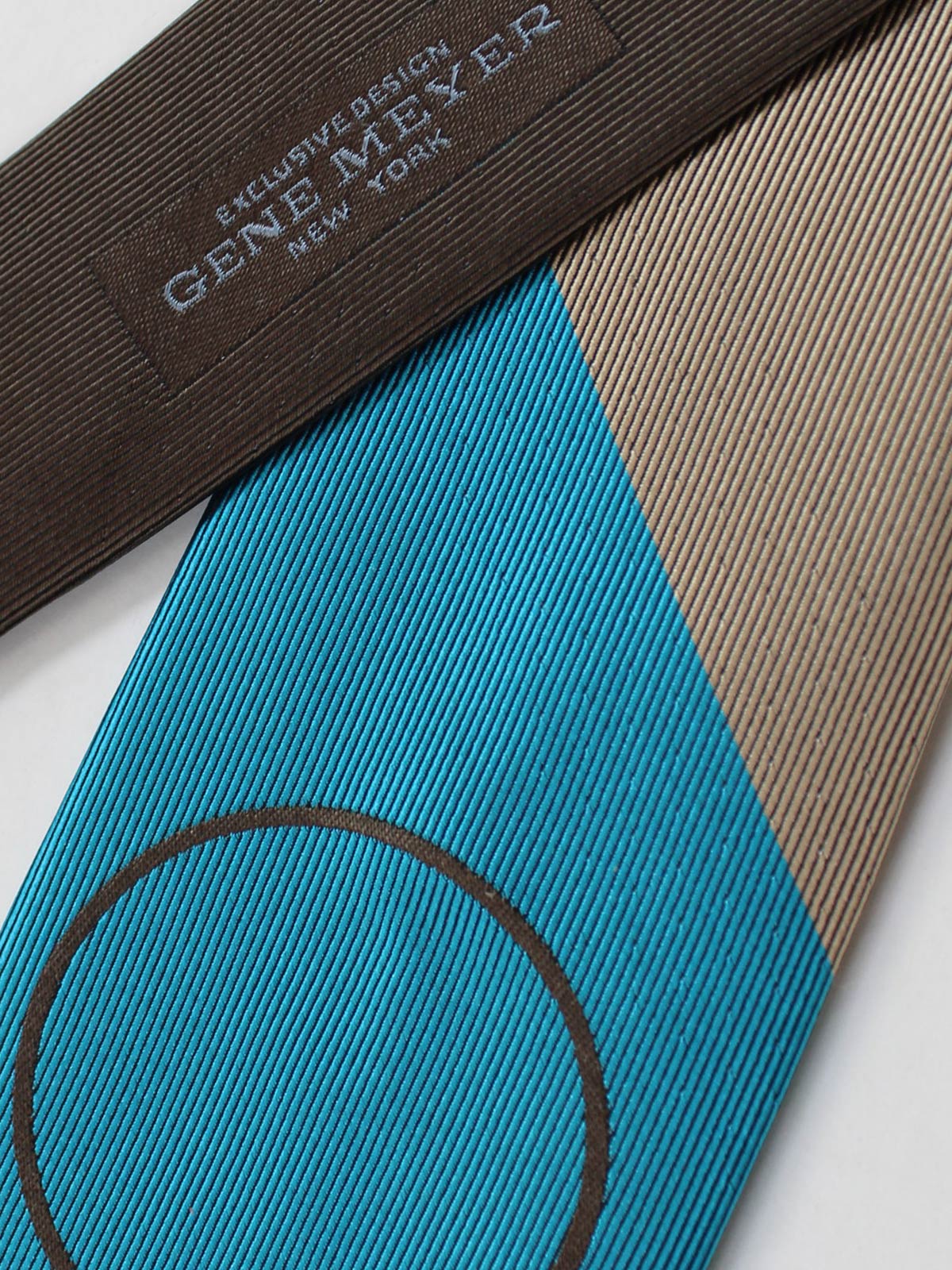 - SALE - Gene Meyer necktie with brow aqua cream large dot circle design, 100% silk, hand made in Italy. Gene Meyer New York. Cool neckties. View all Gene Meyer Socks/ Ties & Bow Ties | Men Designer Socks.