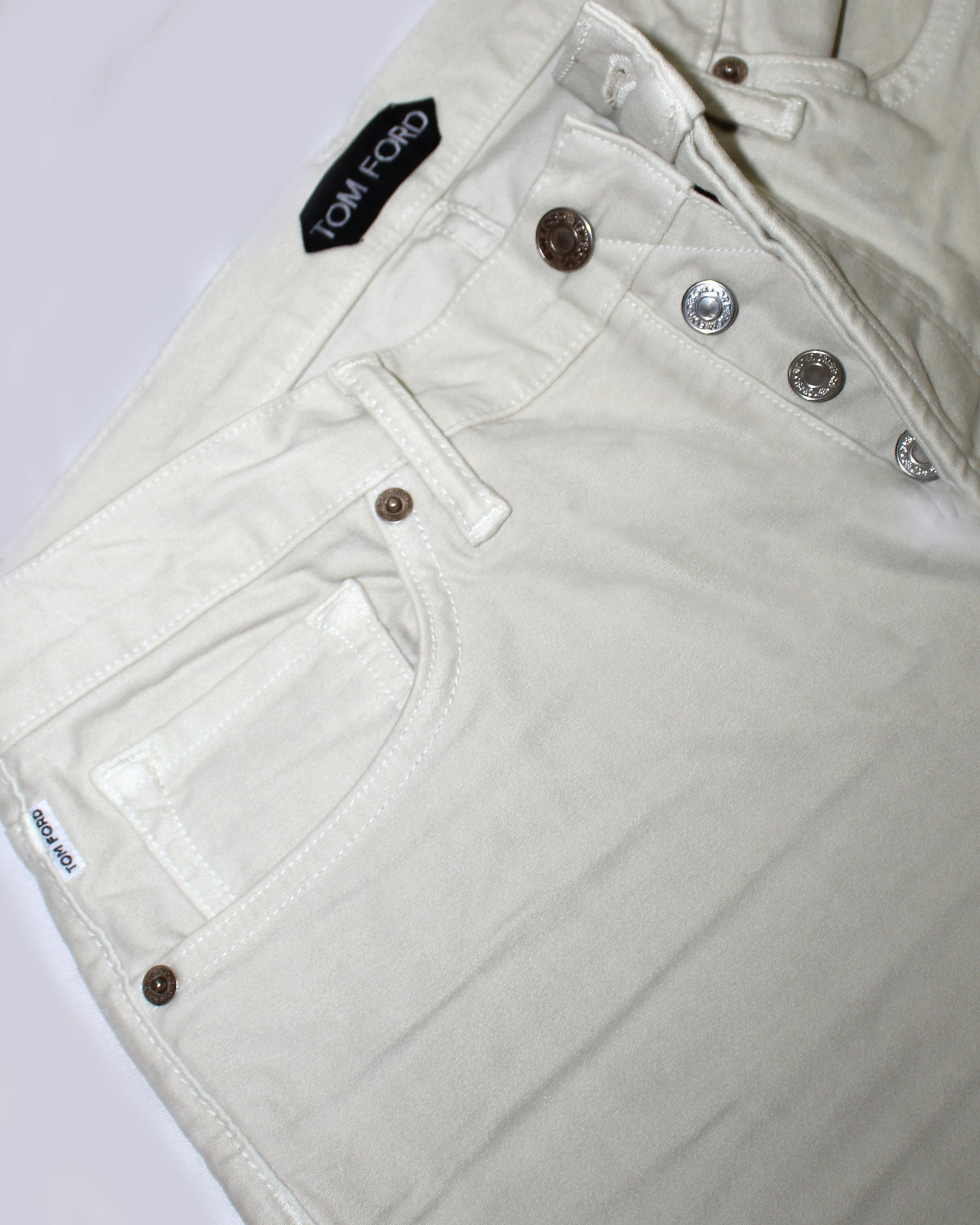 Genuine Tom Ford pants, slim fit, 5 pocket, tan, button fly, cotton, made in USA. Top quality men denim jeans/ 5 pocket pants. Shop all luxury designer pants/ jeans.