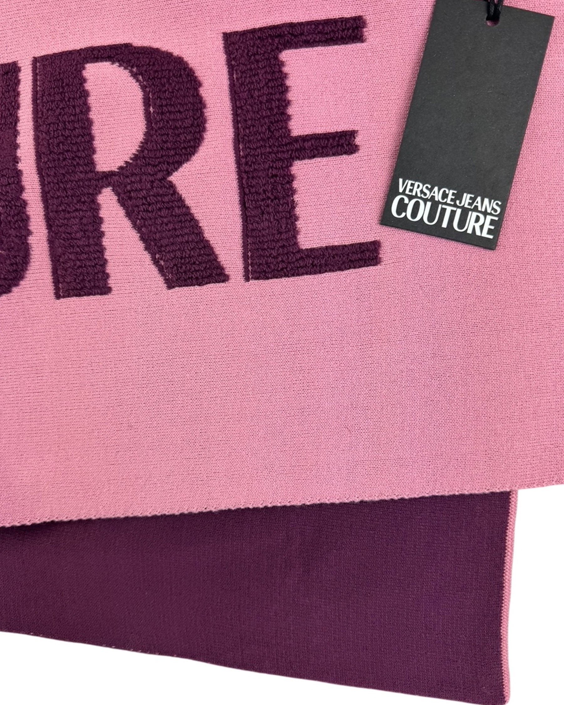Unisex - Fall/ Winter 2025/ 2026 Collection - Genuine Versace scarf, pink with with embroidered purple logo 'Versace Jeans Couture', fall/ winter collection. Genuine Versace scarves.