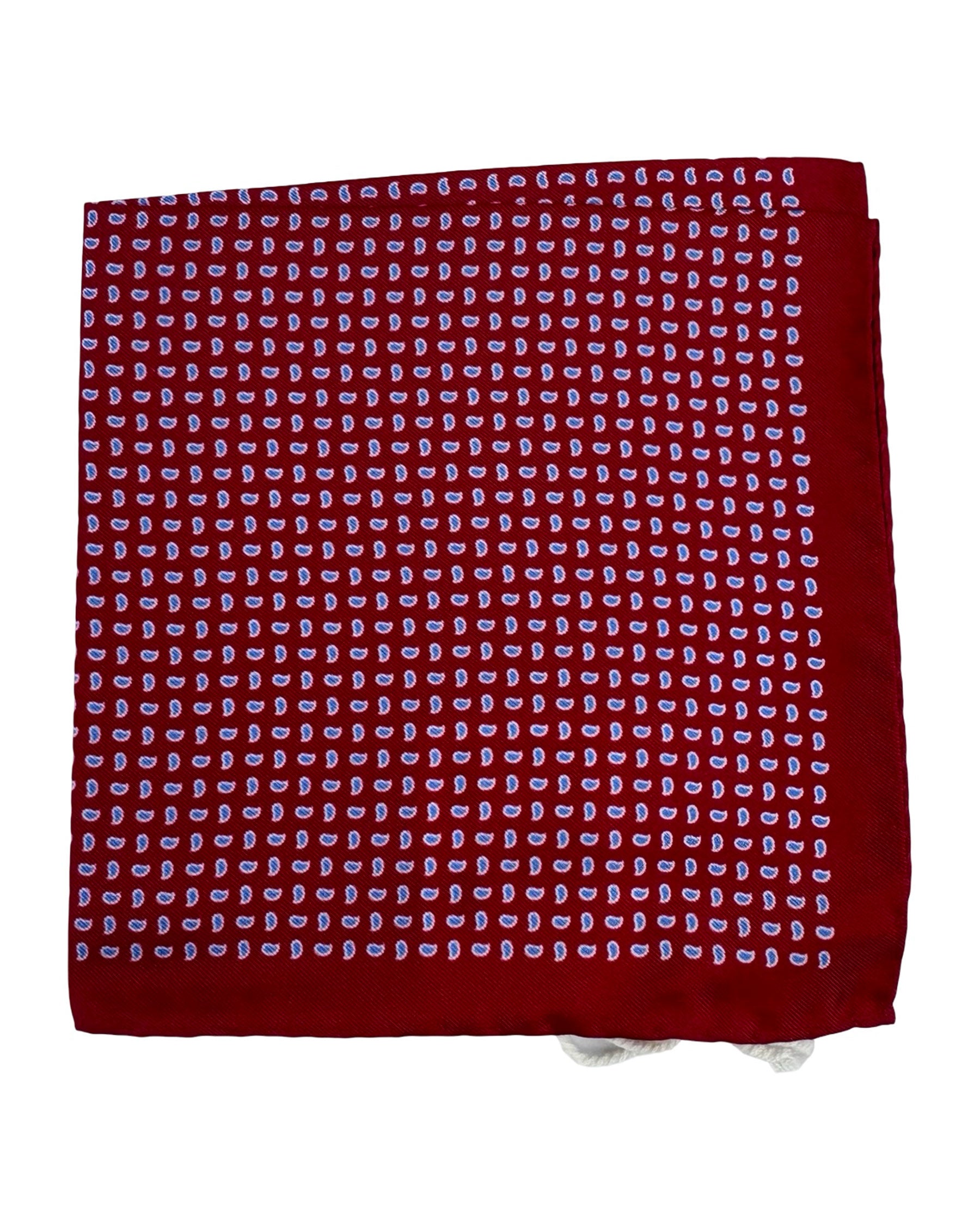 Authentic Luigi Borrelli pocket square, red mini paisley, silk, hand made in Italy. Genuine Luigi Borrelli men's collection. Luxury designer pocket squares/ hankies for men.