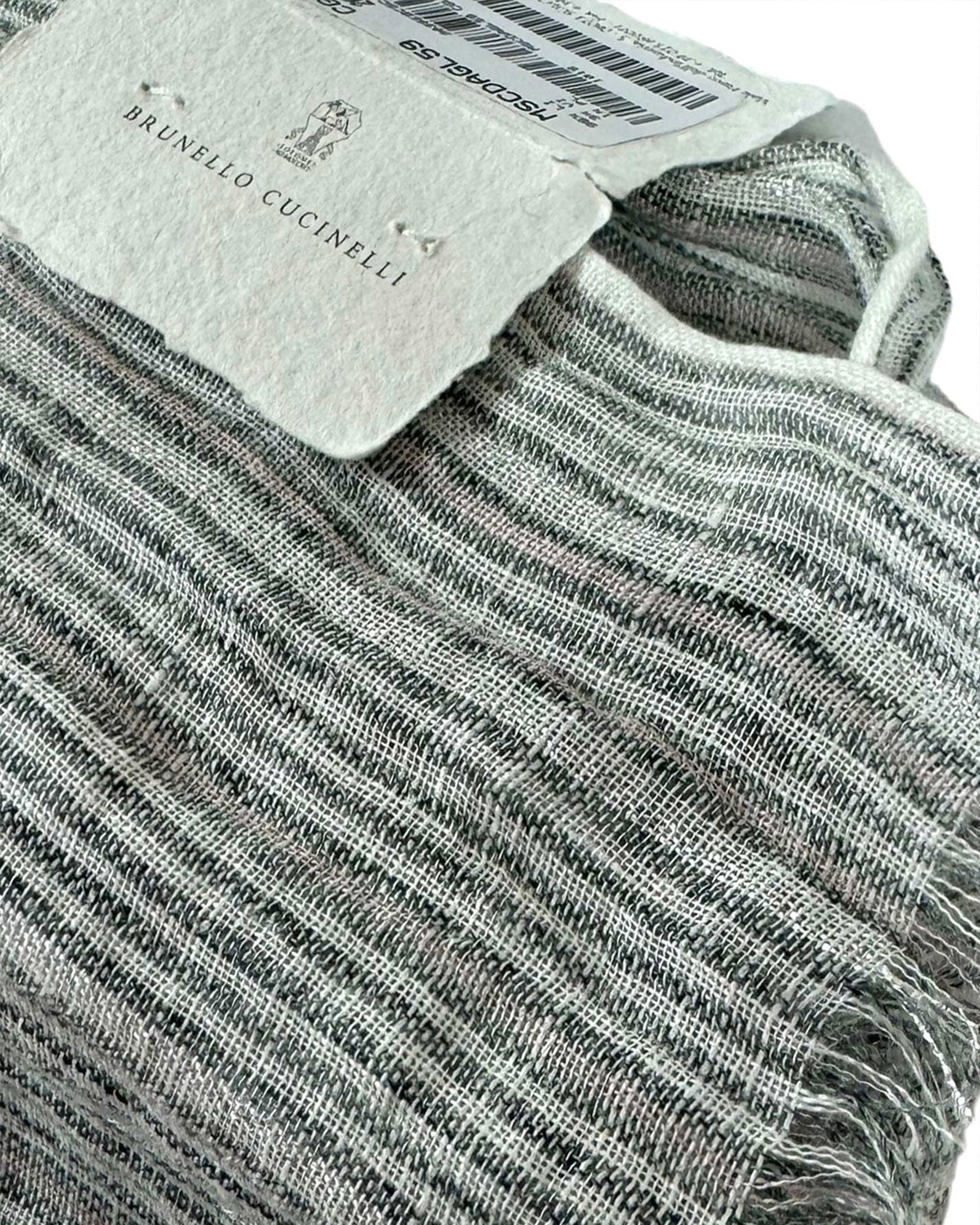 Brunello Cucinelli Scarf White Silver Black Light Pink Stripes - Linen Shawl SALE