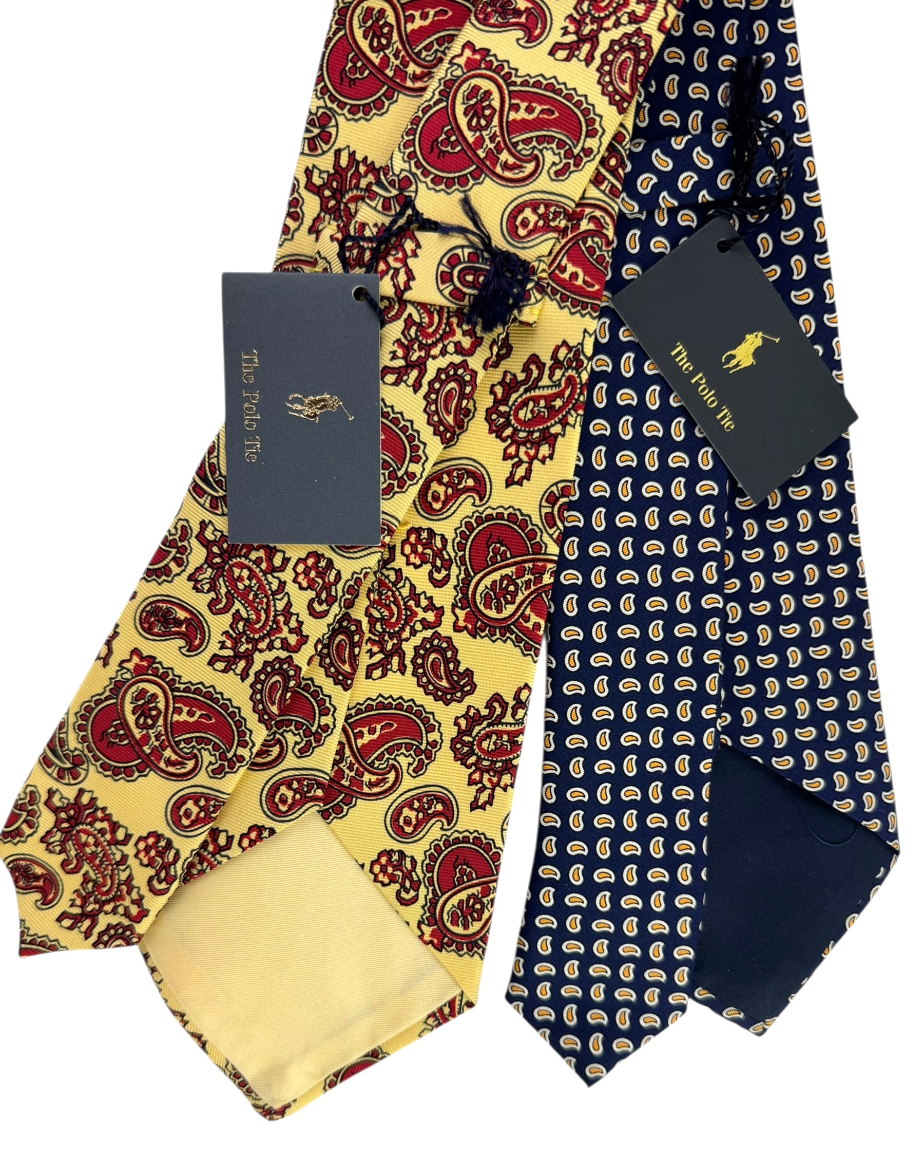 Authentic Ralph Lauren ties, two ties, vintage silk ties with stunning classic conservative paisley design, luxury Ralph Lauren gift box, silk, hand made in Italy. Genuine Ralph Lauren men collection clothes and accessories at outlet prices.