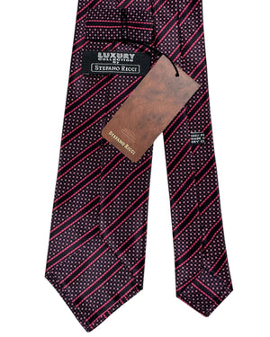 Authentic Stefano Ricci tie, black purple pink striped pattern, silk, hand made in Italy. Genuine Stefano Ricci ties at outlet prices. Luxury Italian men ties and accessories.