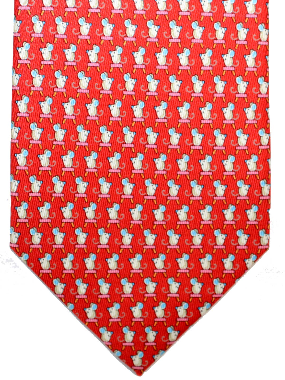 FINAL SALE - Authentic Salvatore Ferragamo tie, red mouse on stool novelty design, printed silk, hand made in Italy. Genuine Salvatore Ferragamo ties online, men collection.