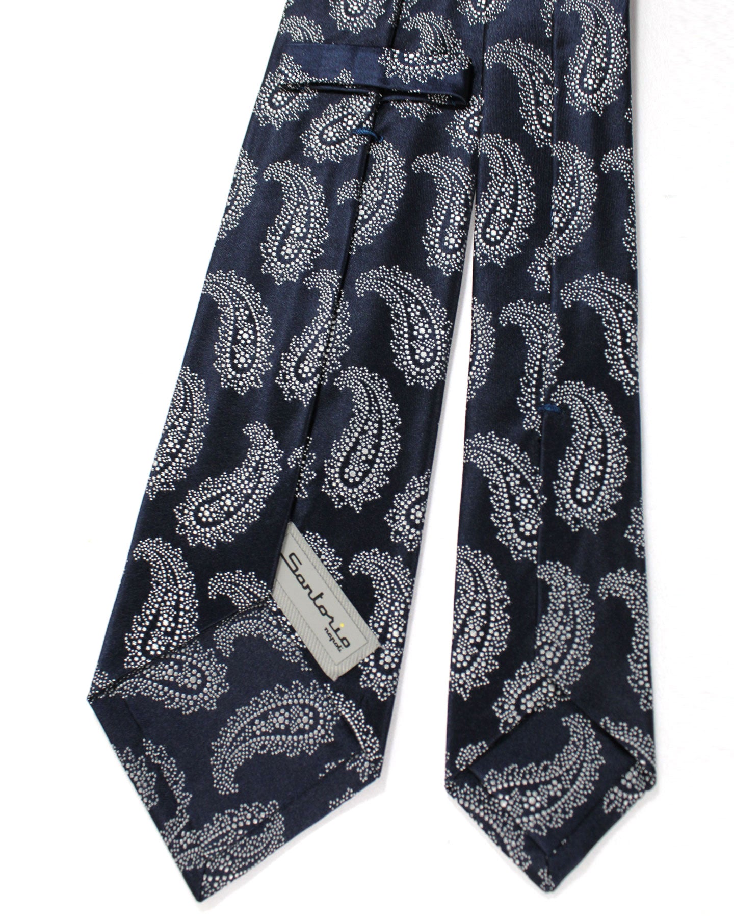 Genuine Sartorio sevenfold tie, black / midnight blue / silver paisley design, hand made in Italy. Sartorio is a sartorial Brand from Napoli, owned by Kiton. Sartorio at outlet prices.