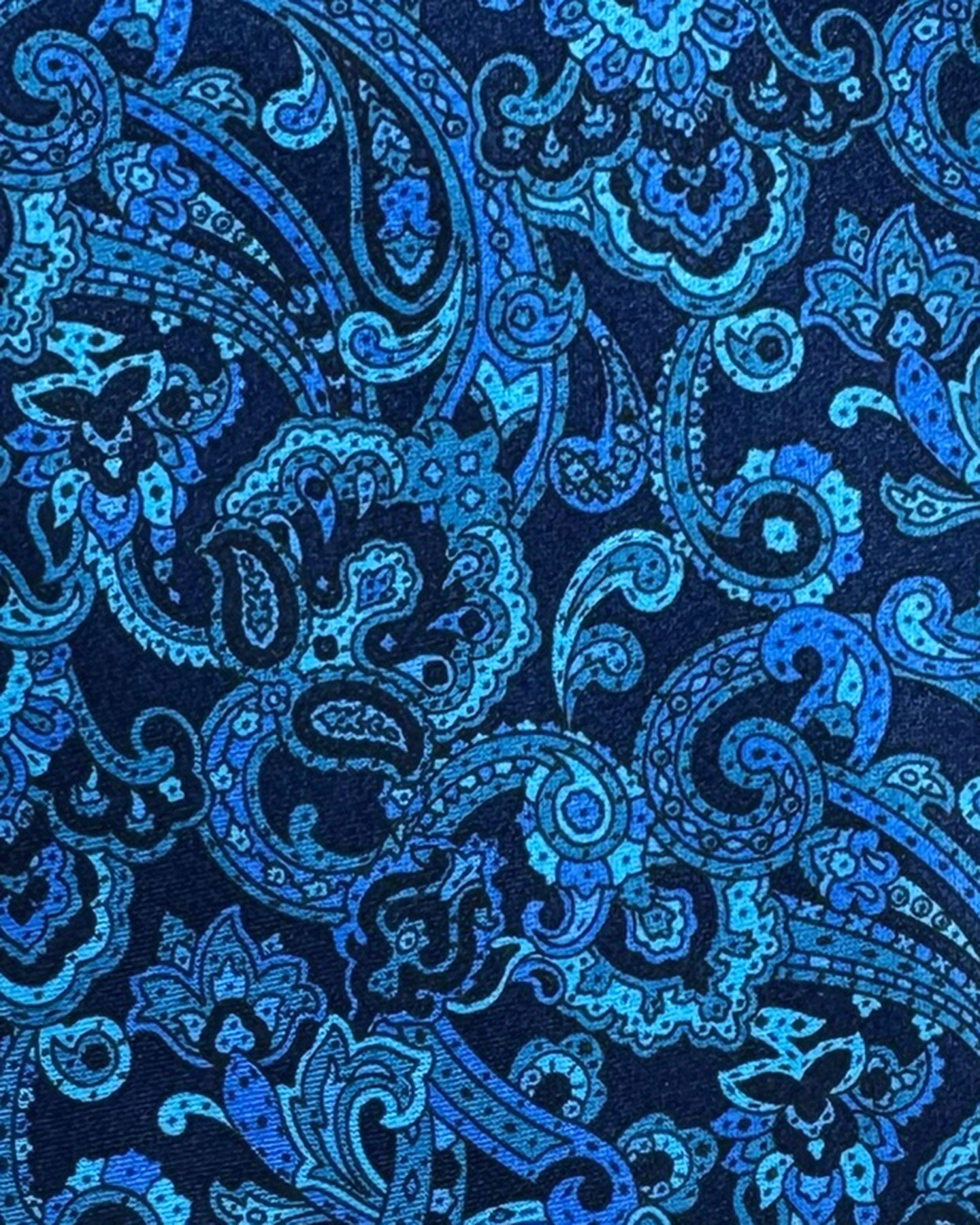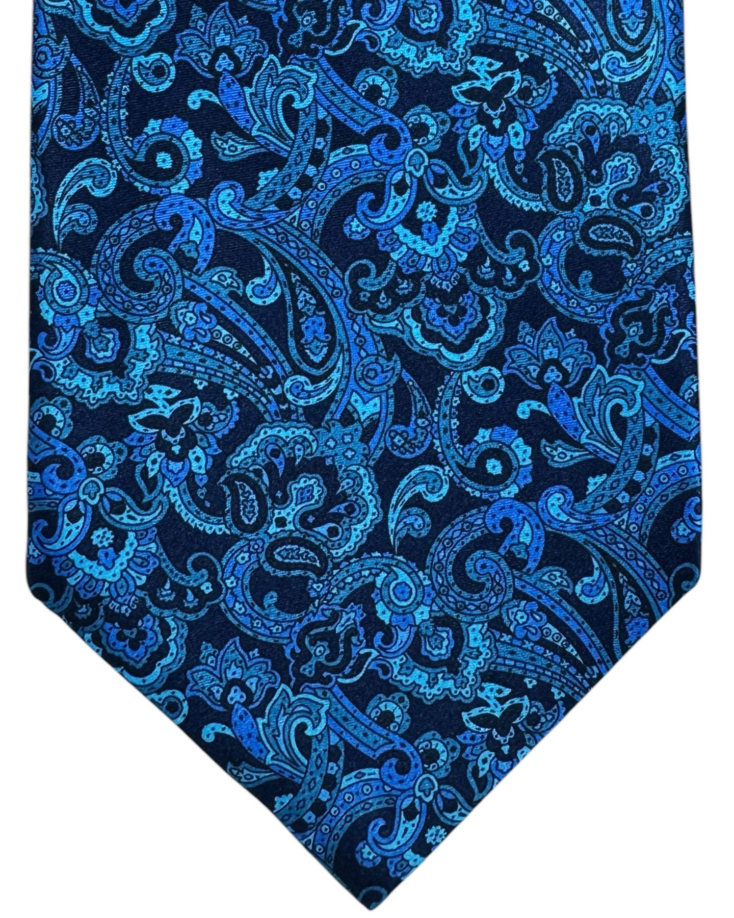 Authentic Stefano Ricci tie, vibrant blue ornamental and paisley with dakr blue (almost black) background design, hand printed silk, hand made in Italy. Genuine Stefano Ricci ties at outlet prices. Luxury Italian men ties and accessories.