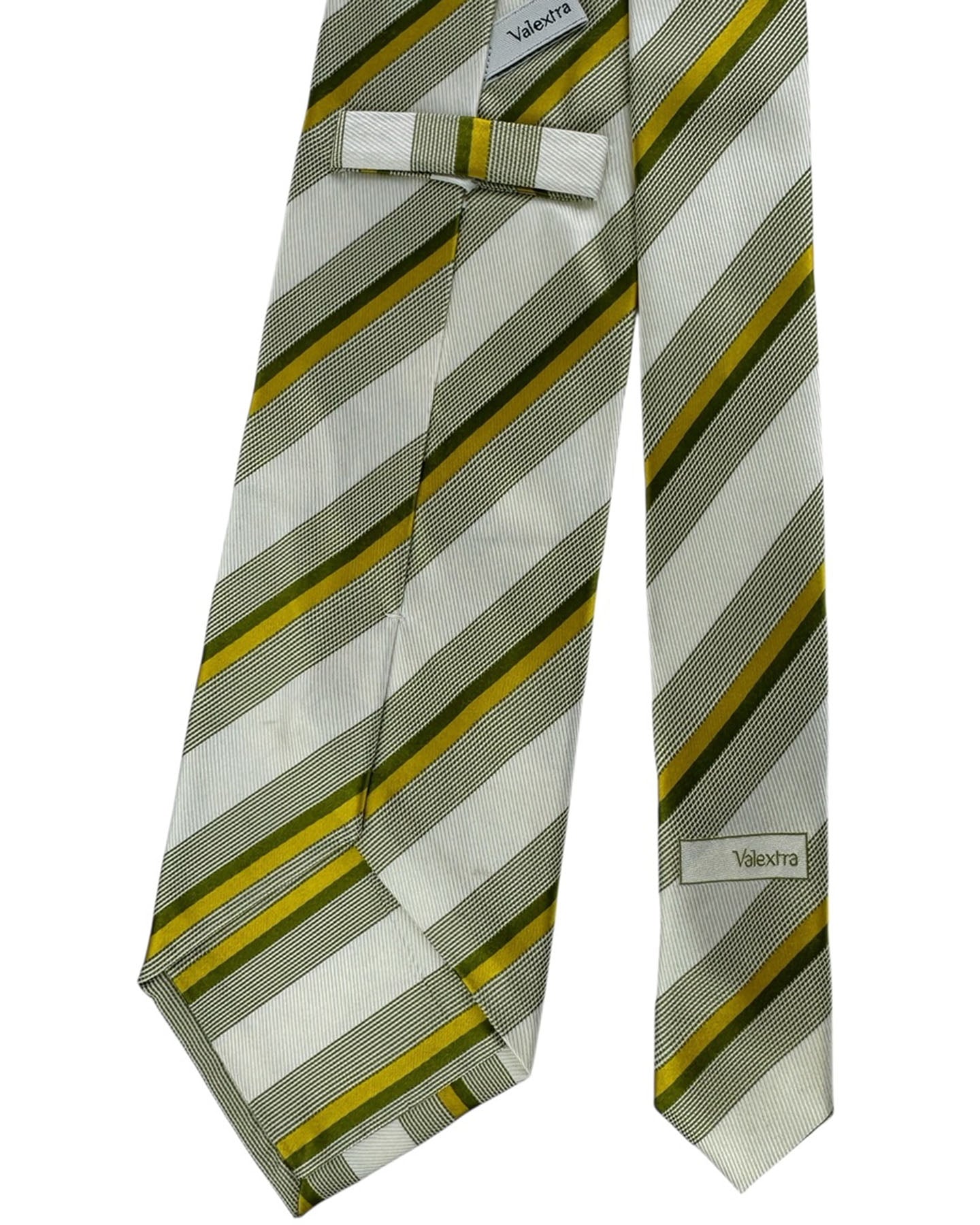 Genuine Valextra tie, white-silver/ olive, wide 9.5cm width, silk, self tipped, high quality, hand made in Italy. Discount luxury designer ties, Valextra men fashion accessories at outlet prices.